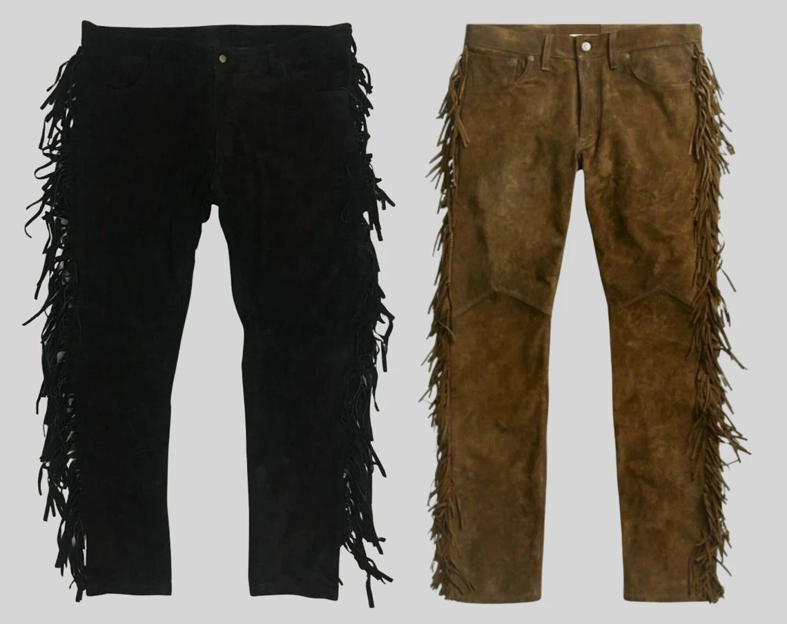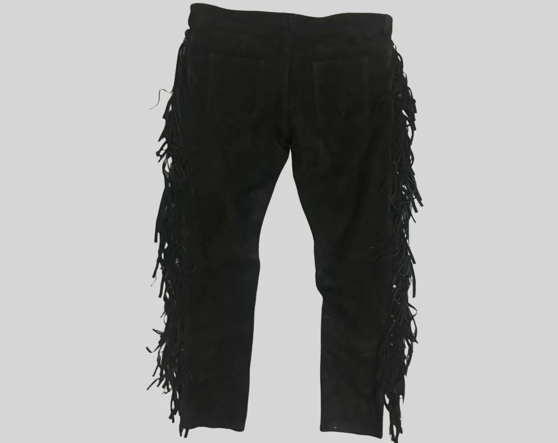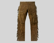 Men's Suede Western Style Cowboy Leather Pant With Fringe
