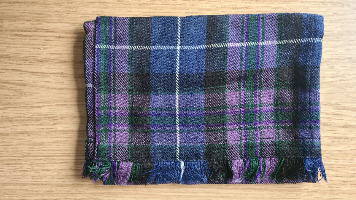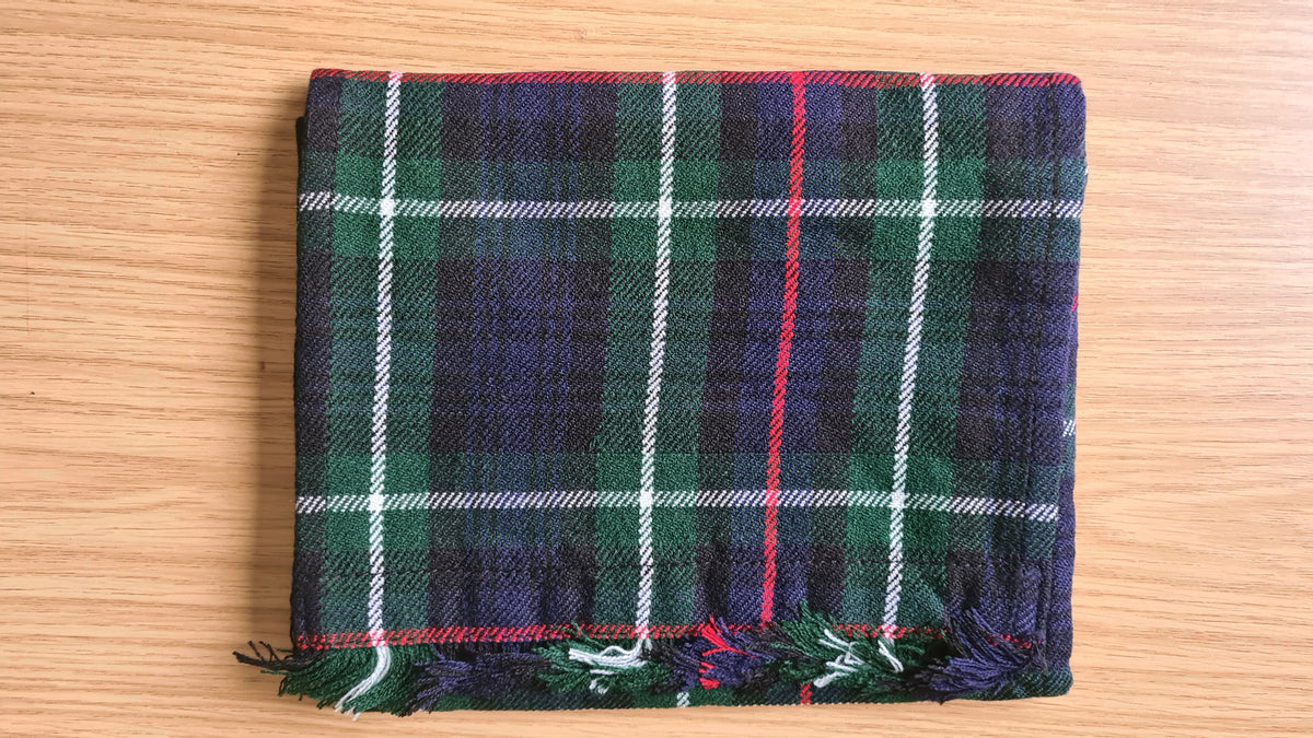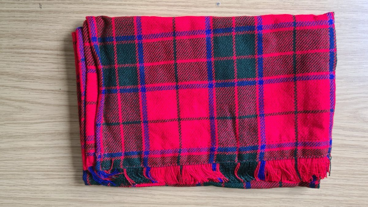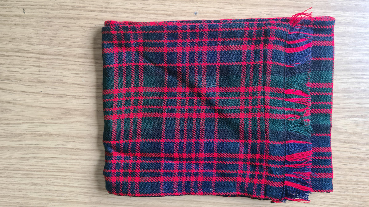 Scarf is thick, of good length and wonderfully colored tartan. Excellent product. I would happily purchase on site again.
