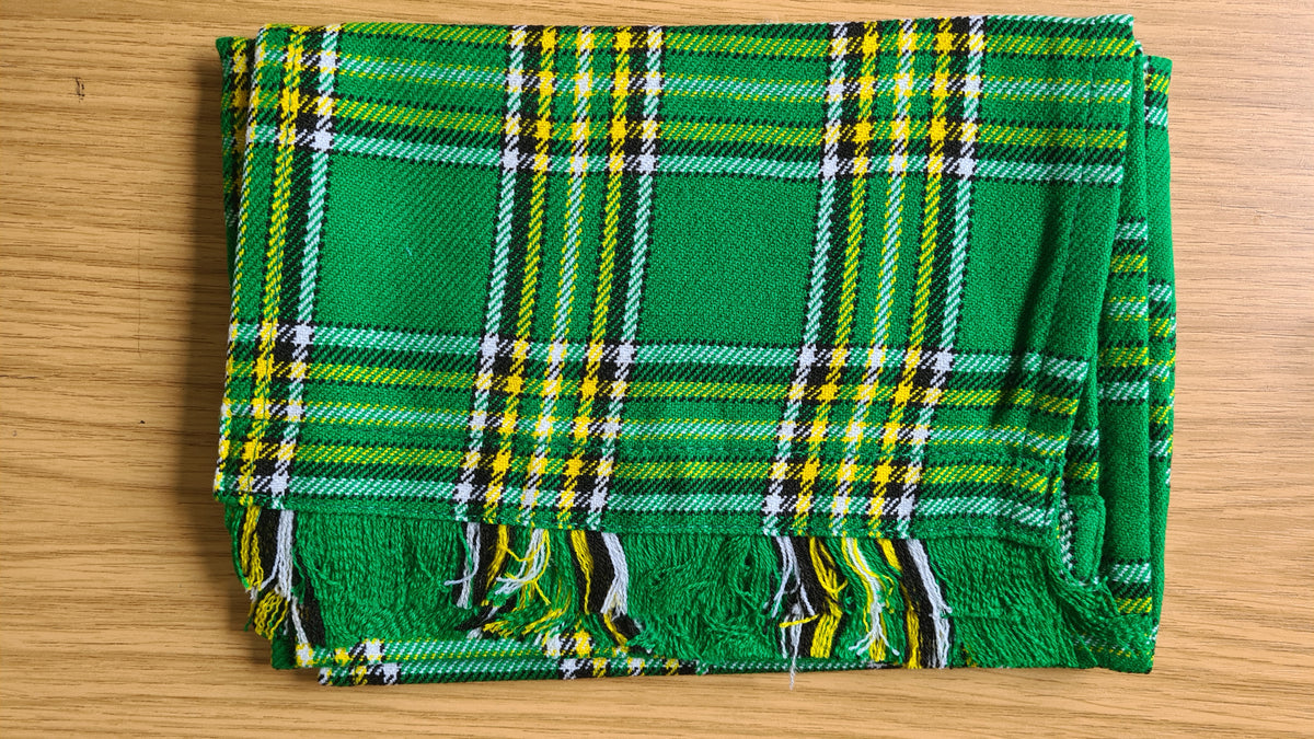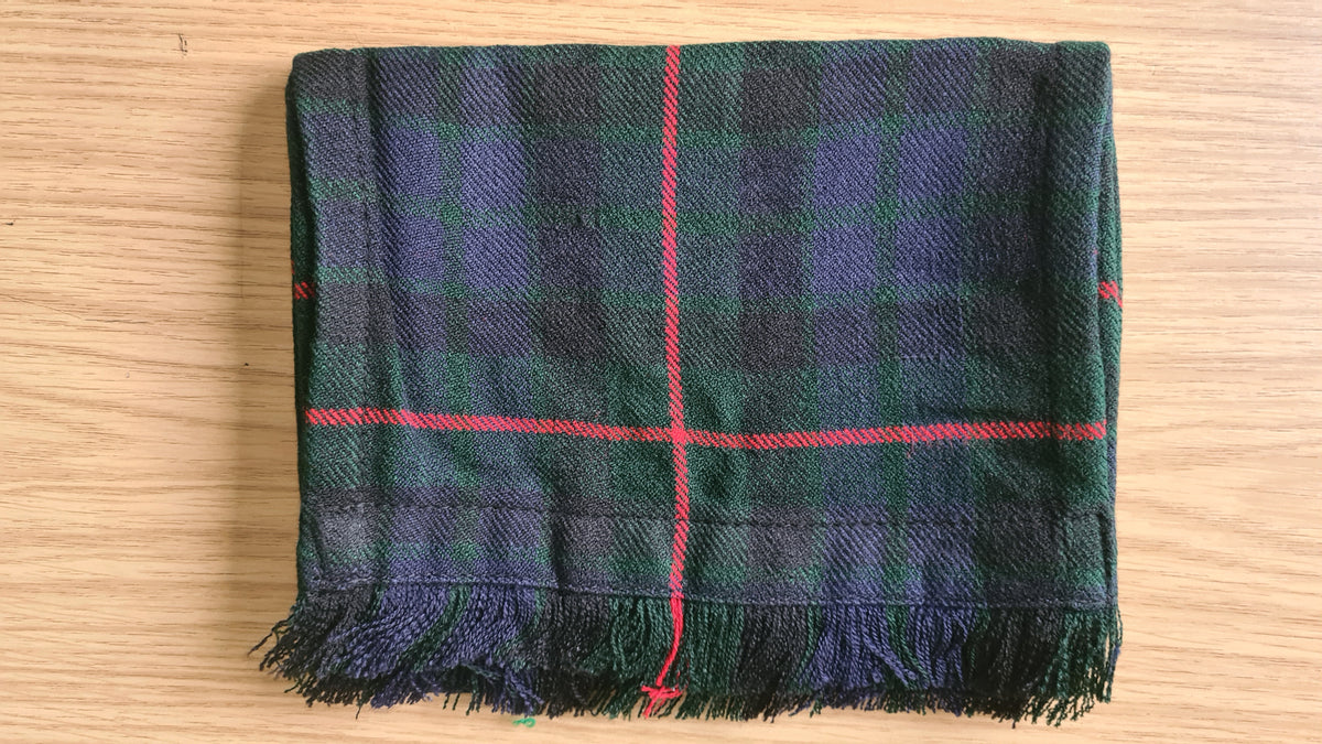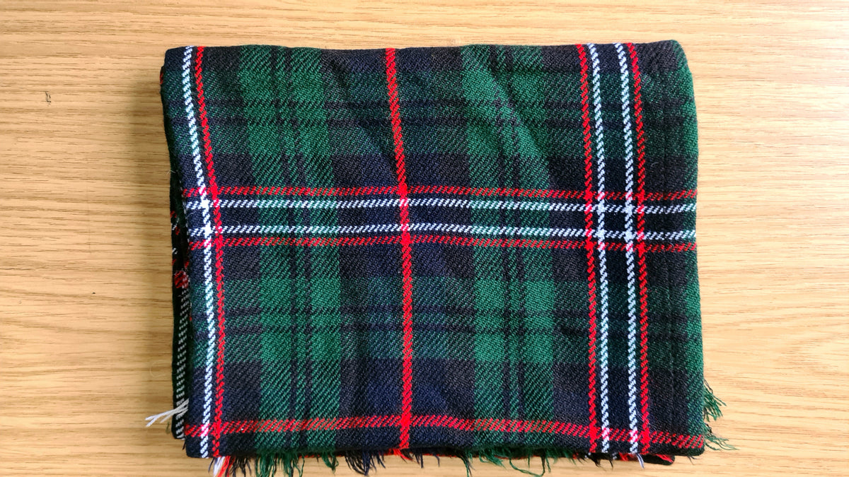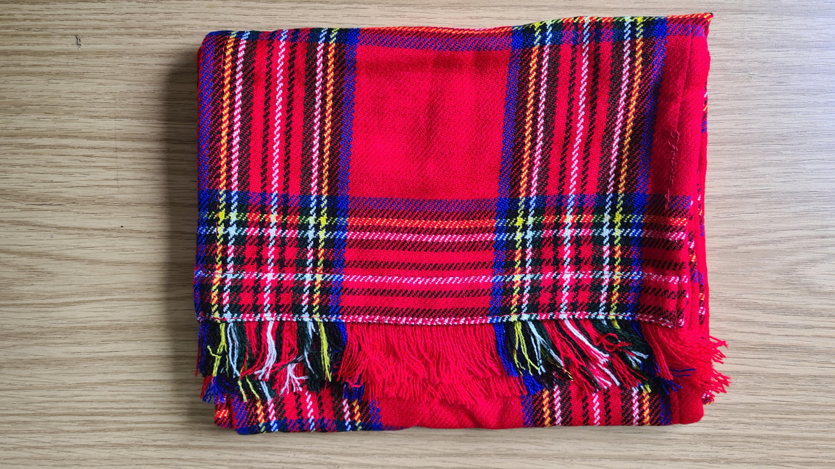 Scarf is thick, of good length and wonderfully colored tartan. Excellent product. I would happily purchase on site again.