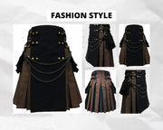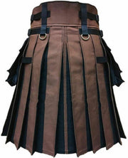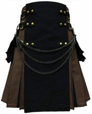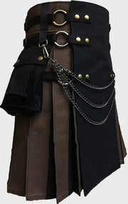 Black & Brown 100% Cotton Pleats Canvas Cargo Utility Kilt