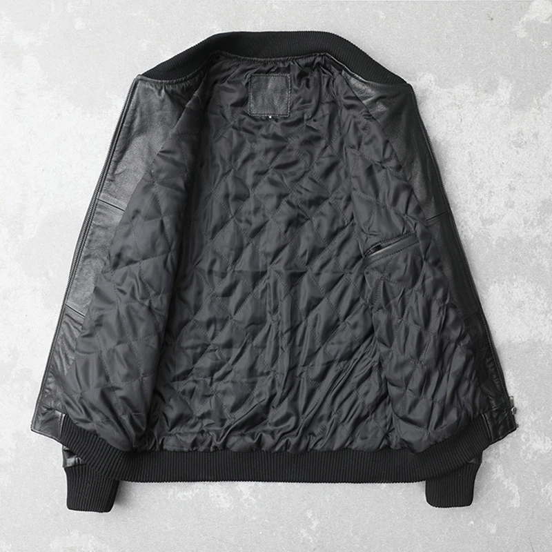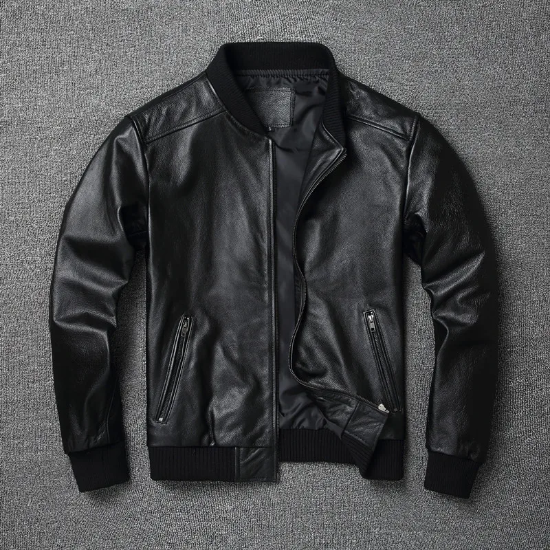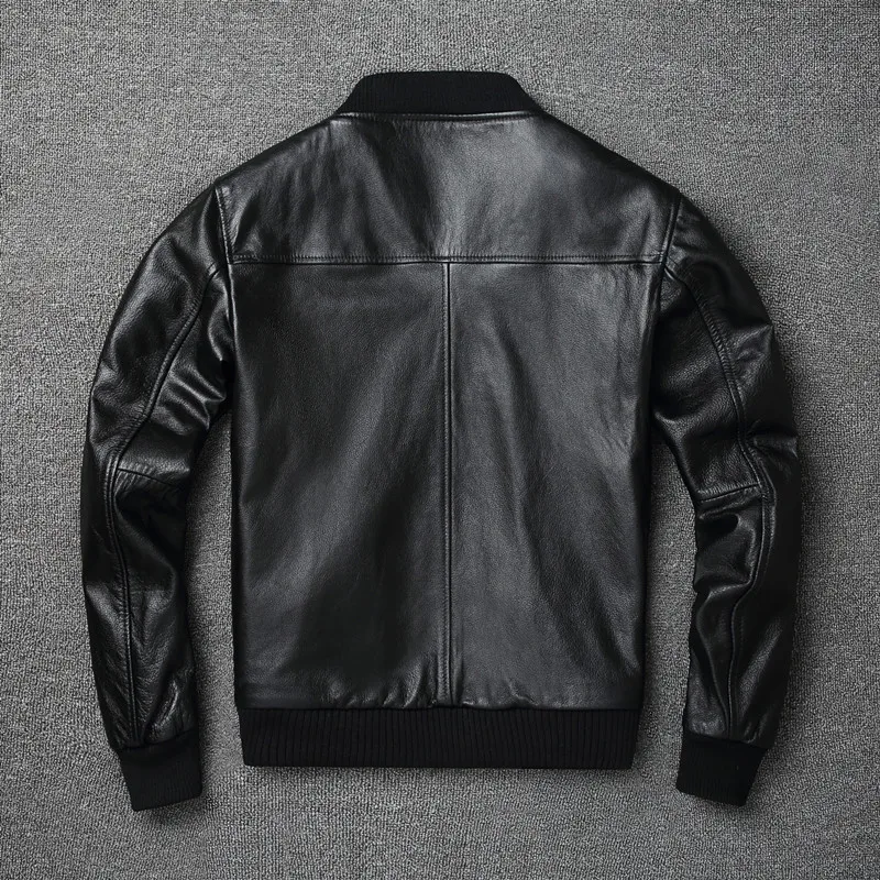 Black Genuine Leather Bomber Jacket for Men – Premium Cowhide