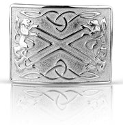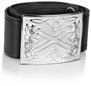 Celtic Embossed Black Leather Belt & Saltier Rampant Lion Scottish Buckle