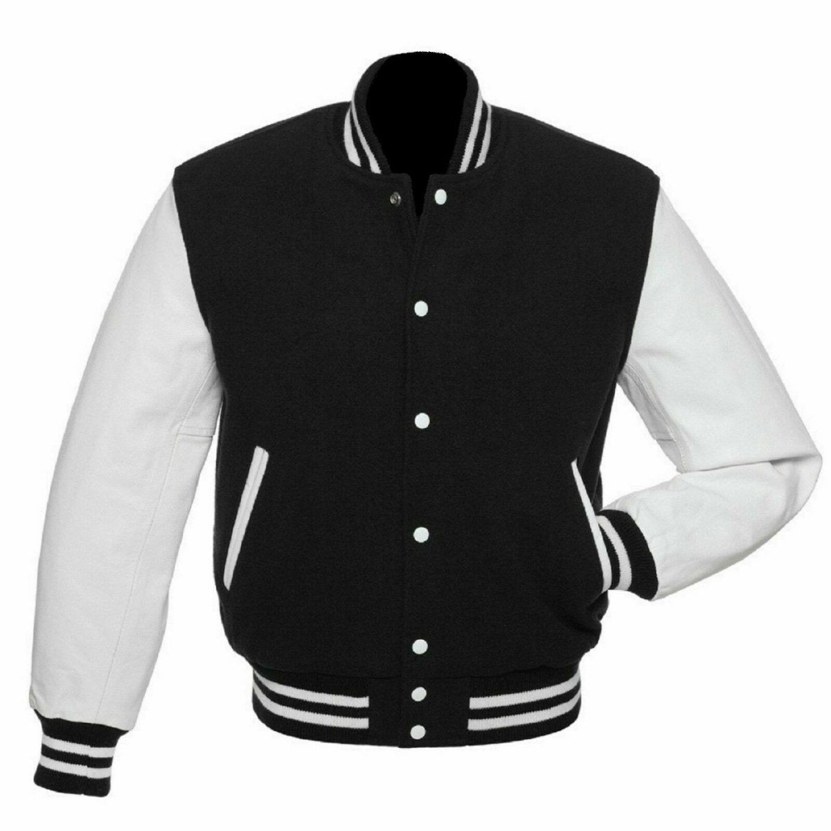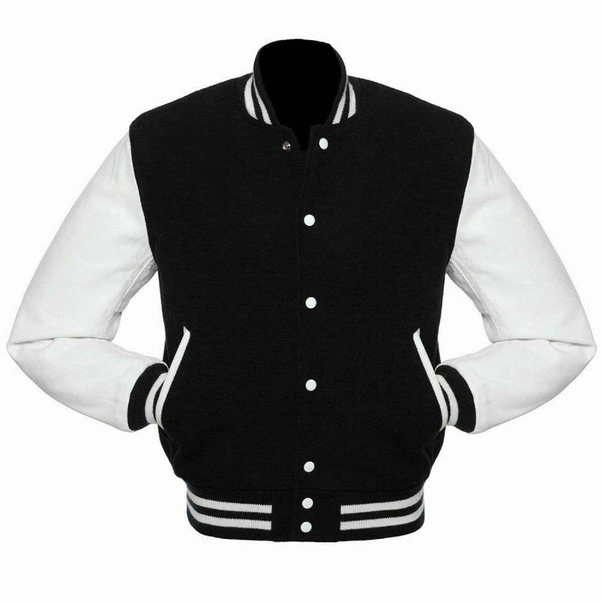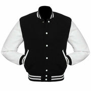 Varsity Letterman baseball jacket Wool Body & Leather Sleeves Black & White Classic