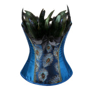 Peacock Feather Corset Lingerie Top Embroidery Overbust Shapewear
