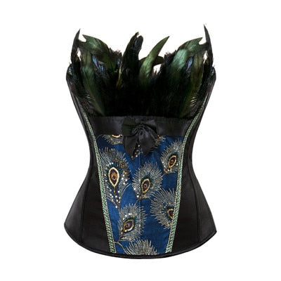 Peacock Feather Corsets Bustiers Top Embroidery Brocade Burlesque Overbust Corset Gothic Clothing Body Shaper Bustier