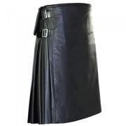 New Stylish Black Leather Kilt with Twin Cargo Pockets 100% Cowhide Leather