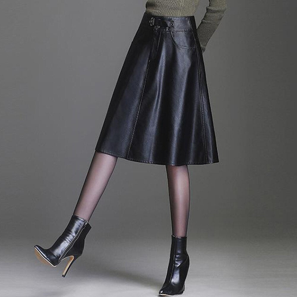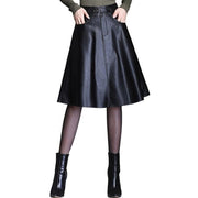 Leather Skirt Black High Waist Long Midi A-Line Skirt Saias Mulher