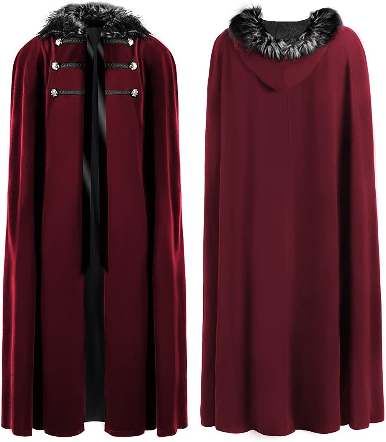 Keep warm in style with this stunning RED GOTHIC LONG HOODED FAUX FUR CLOAK for men! Not only will you feel comfortable and cozy, but you'll also make a fashionable statement with the luxurious hood . look and feel amazing!