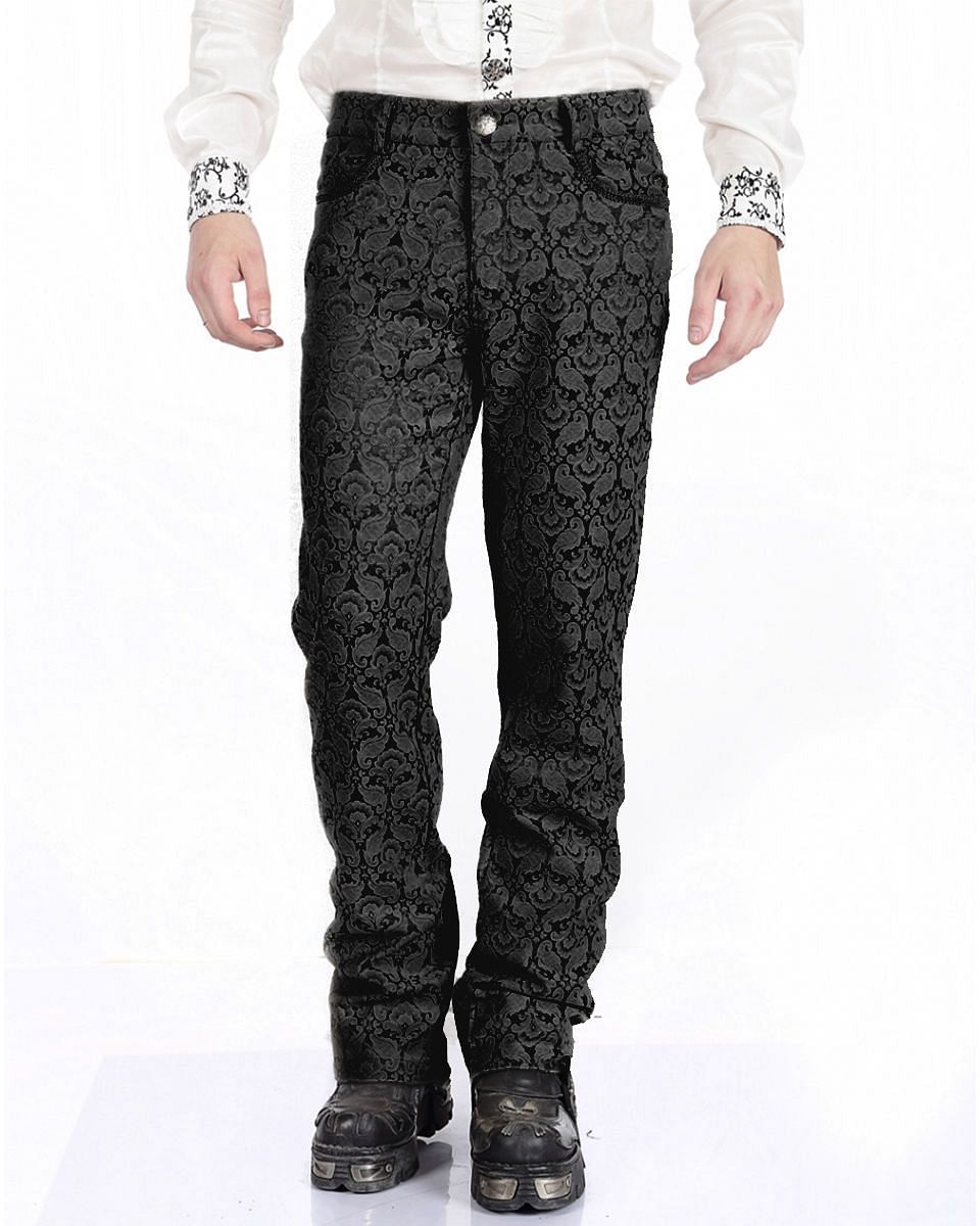 Mens Trousers Pants Black Brocade Steampunk VTG Gothic Aristocrat