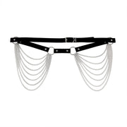Layered Leather Belt With Chains Body Harness Waist Goth