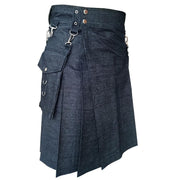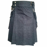 Black Detachable Pocket Denim Utility Kilt