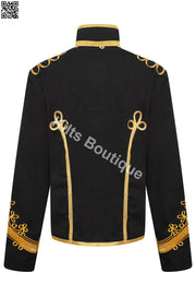 Luxe men's black parade jacket, inspired by the jacket Adam Ant famously wore on stage