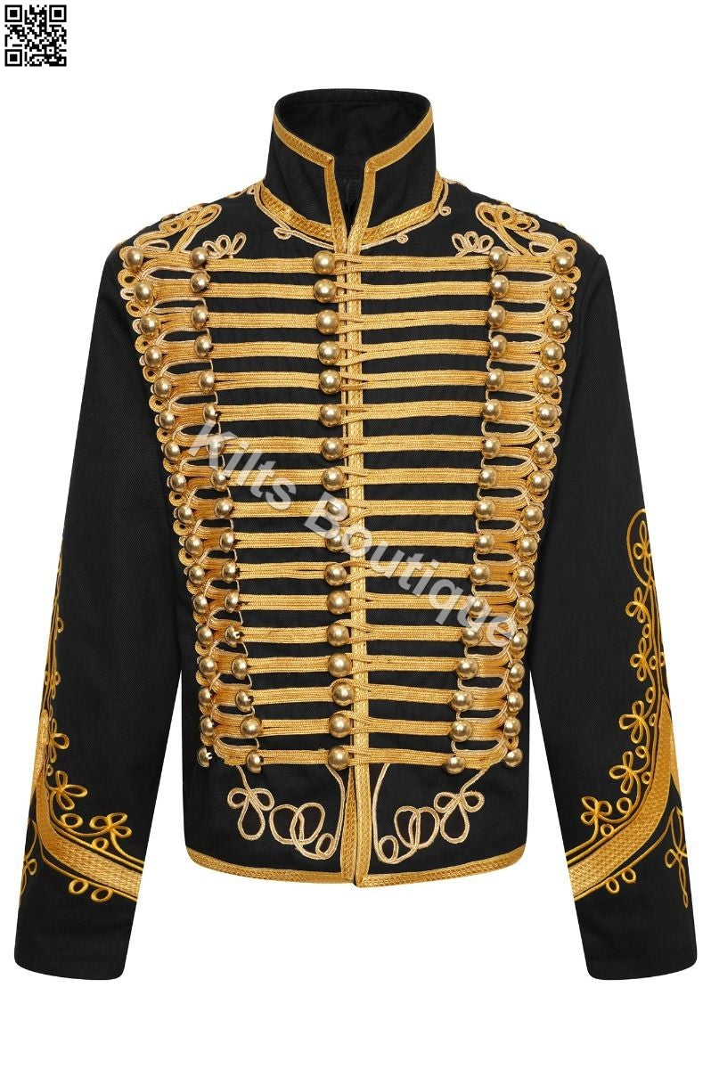 Men's Adam Luxe Black  Military Drummer Hussar Jacket, Man's napoleon fashion jacket